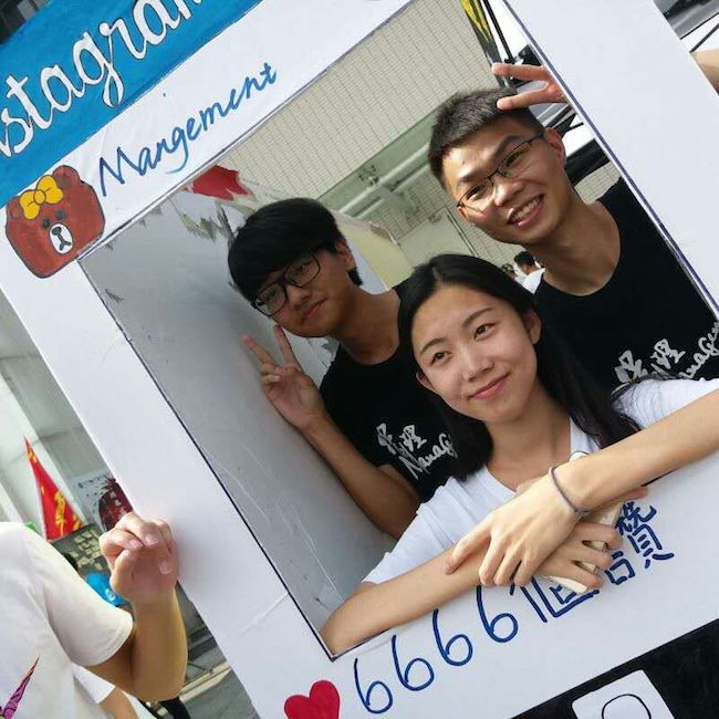 “拍黑照做表情包的欢乐时光。”来自一位管理系方阵的颜艺爱好者。