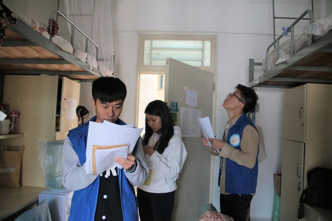检查分成13个组,分别深入学生宿舍、校内商铺,重点检查宿舍违禁物品、安全用电、消防安全及商铺的防火公约、用电、用油、用气安全等情况。据介绍,检查结果总体令人满意,但仍有个别宿舍存在卫生状况差、室内不够整洁、插座线头外露、违章使用大功率电器等问题。对存在的问题,检查组要求各宿舍现场整改,并将违规使用大功率电器情况进行详细登记在册。
