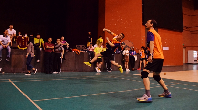 赛场上,教工们身手敏捷地跳转腾挪,灵敏的反应,昂扬的斗志,博得了观众们的阵阵喝彩声。此次羽毛球赛既丰富了教职工们的业余生活,又促进了教职工们团结合作的精神。