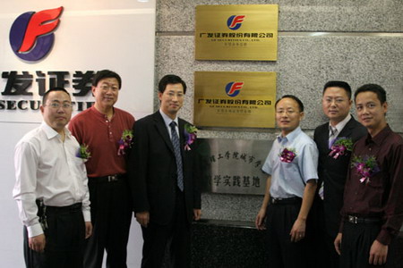 4月7日,城市学院常务副院长程发良教授、副院长林世俊教授和经贸系主任田野教授来到了广发证券股份有限公司东莞业务总部,在周培胜总经理的陪同下举行了“东莞理工学院城市学院教学实践基地”挂牌仪式。