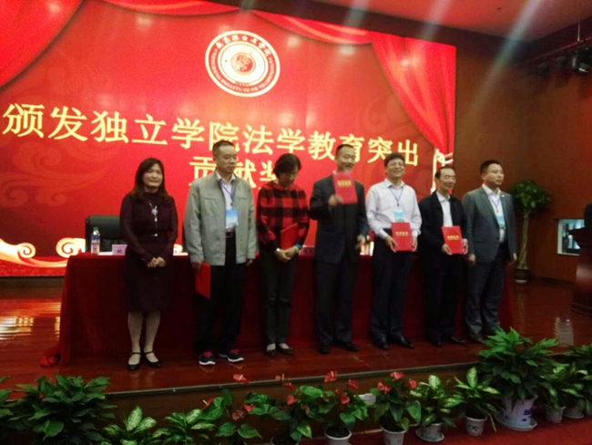 4月21日-24日,全国独立学院(含民办院校)法学教育2017年年会在南昌举行,来自全国46所高等院校的专家学者出席会议。会议表彰了一批先进个人,我院刘杰教授喜获“全国独立学院法学教育突出贡献奖”。
