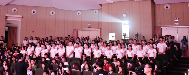 党家立老师的《共青团之歌》,让在场观众自觉起立宣誓,有力地证明青年学子就是铁血铸就的长城。小品《汉字弹乱》由文传系谢友祥教授执笔创作并亲自指导,恢谐生动的表演引来一阵阵开怀大笑,而表演也使大家更加重视“汉字读音”。