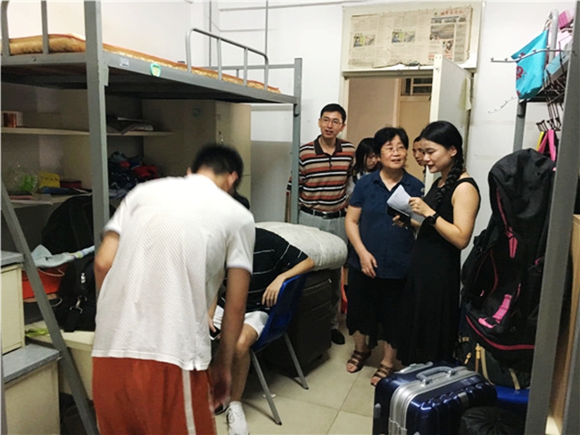 9月3日下午,机电系系主任赵天婵教授、党总支书记殷素峰老师、党总支副书记刘军老师、辅导员何珊珊老师、黄威老师来到专插本新生宿舍,探望新生,耐心细致地检查专插本新生们的宿舍情况,以确保新生们住得安心,能够尽快的适应新环境。同时还与新生们进行了亲切的交流,鼓励新生们要珍惜在校学习时光,树立远大理想。并表示不管同学们遇到任何困难,都可随时向老师们寻求帮助。