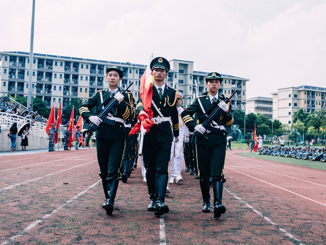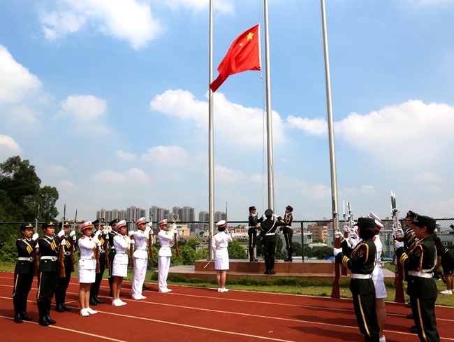 在庄严的升国旗仪式中,开学典礼拉开序幕。
