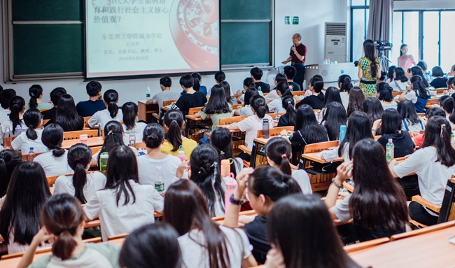王院长分析当代大学生有“怕吃苦、认识能力有限,但精力旺盛”等特点,介绍了大学的教育方式、生活方式与高中时期相比所发生的“质”变化,强调同学们从迈入大学开始就要积极培育和践行社会主义核心价值观。