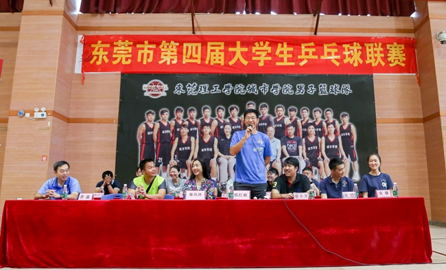 我院体育教学部主任邢红林教授致开幕词,指出大赛旨在加强东莞高校间的交流、互动,提高大学生乒乓球竞技水平,增强体质!