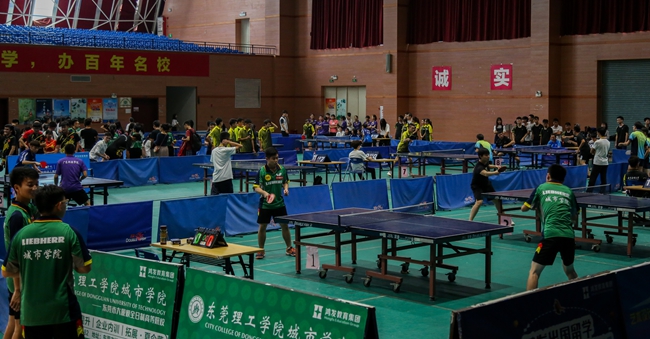 由东莞市乒乓球协会和城市学院联合主办的第四届东莞市大学生乒乓球比赛,10月14日在综合馆成功举办。