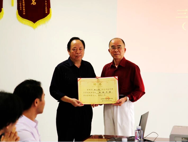 王卫平院长为谢小鹏教授颁发机械工程重点学科带头人聘书