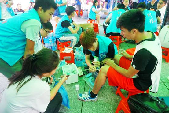 赛场上,体委会纠察员们身穿黄色T恤,手里拿着警戒带站立着,全程维系着比赛安全。一站便是一个赛程,每次比赛,他们必定手拿警戒线,威严站立在那。尽管烈日炎炎,但他们仍尽职尽责毫无怨言,为校运会无私的奉献着。运动会的圆满成功,正是有着这群默默奉献的幕后工作人员!(大学生实习记者 蔡贤珊 陆晓煌 )