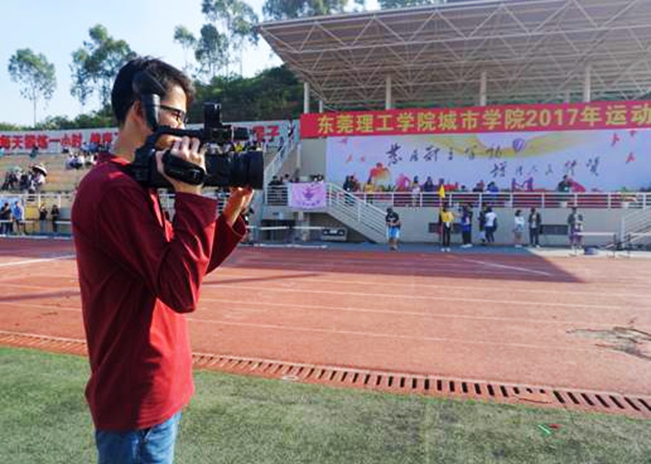 寮步电视台记者对运动会做出了高度的赞许,他说:“在党的十九大中,习主席说‘青年强则国家强,青年兴则国家兴’,并且今天是大学生节,学院在今天举行运动会特别有意义,让我们看到了东莞当代大学生的风采与活力。”