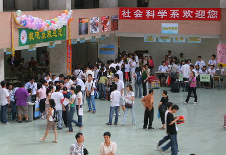 记者在校园里看到,在学院的统一调度安排下,迎接接待等各项工作井然有序。报到注册现场,新生咨询、报到、缴费、户口迁移以及家长接待等工作都在有条不紊地进行。学院各系也成立了新生接待点,为新生报到、住宿等工作提供帮助和服务。
