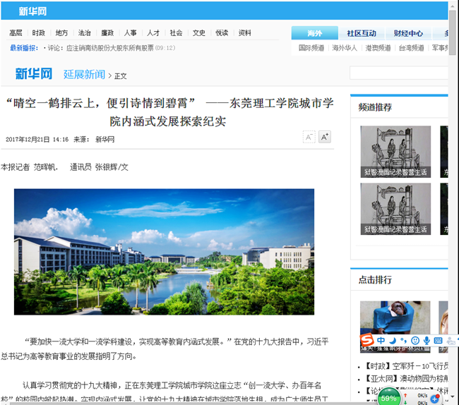 这是继11月27日东莞日报刊发了《东莞理工学院城市学院内涵式发展探索纪实》后,引起了中央级媒体的关注与报道。报道发表后,取得了良好的社会效益,提升了学院的形象!