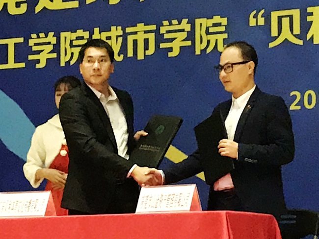 王卫平院长代表城市学院与广东贝利体育文化传播有限公司签署了“东莞理工学院城市学院贝利文体发展基金协议书”,并向广东贝利体育文化传播有限公司授予实践基地牌匾。