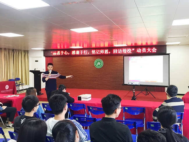 我院启动首届“回访中学母校谢师恩”社会实践活动。1月4日,招生就业处举行了“感恩于心、感谢于行、铭记师恩、回访母校”动员大会。