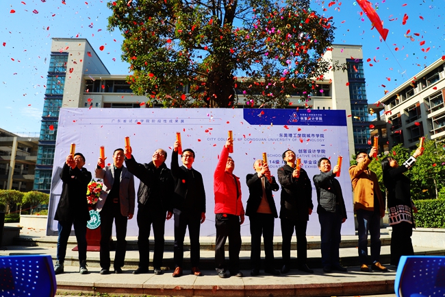 与会嘉宾和领导为毕业设计展鸣彩炮