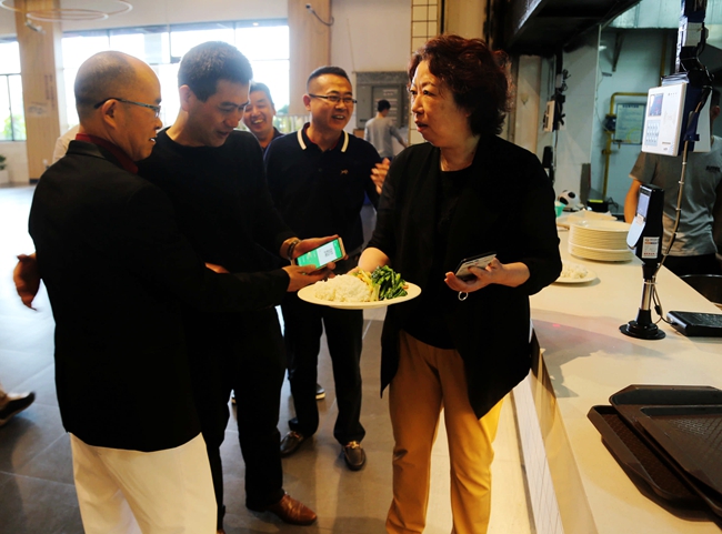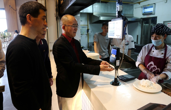 3月3日上午,王卫平、章德胜、高香林、周庆、刘玉侠等院领导视察了新学期食堂的准备工作,并来到悦香园三楼体验了移动支付用餐的便捷性。