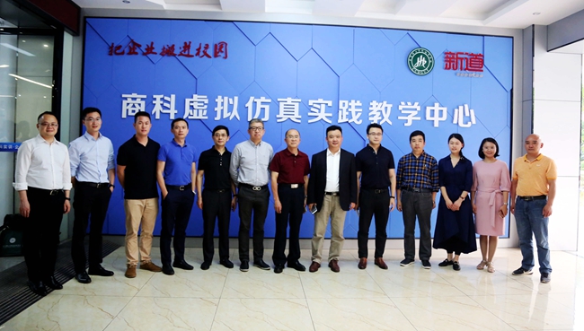 新道公司代表们还参观了商科虚拟仿真实践教学中心,并详细了解商科虚拟仿真实践教学中心的概况、功能作用以及培养目标。