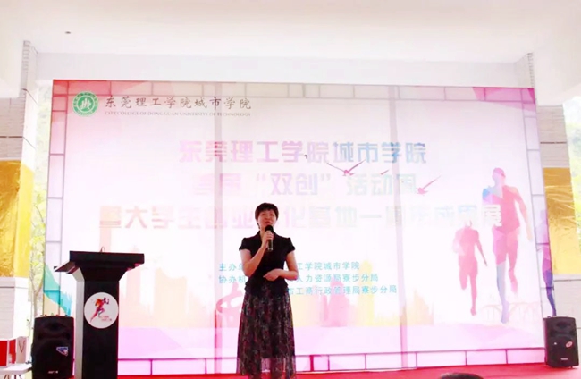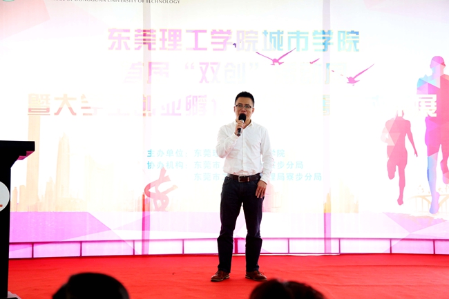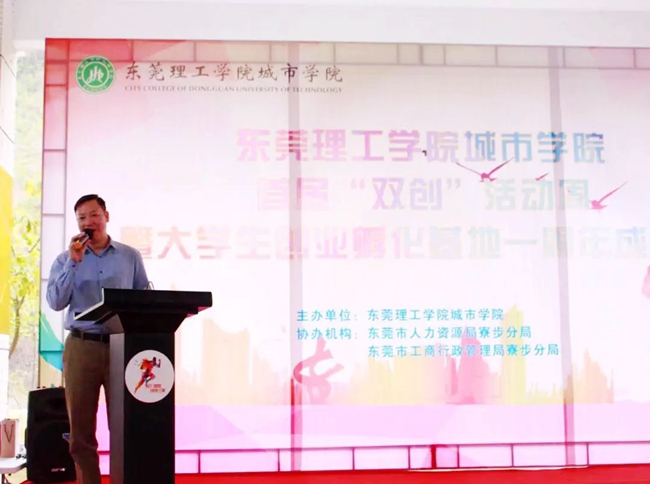 黄兢副院长在致词中对一直支持我院创新创业工作的各级政府领导、社会各界人士以及东莞各兄弟院校,表示衷心的感谢!他介绍了我院近年来的“双创”建设工作和大学生创业孵化基地建设一年来的运营成果。