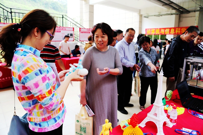 领导嘉宾和各院系师生代表参观了“双创”活动成果展。