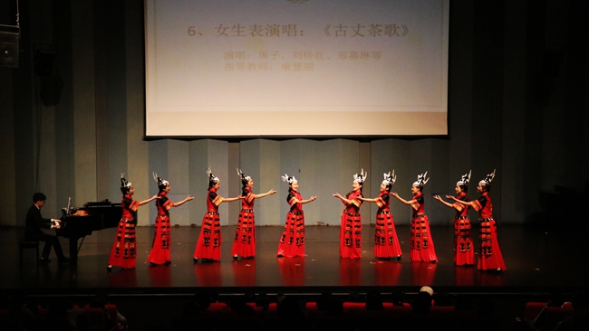 在张宏渝老师指导的大合唱《梨花又开放》中,音乐会拉开帷幕。艺术系春天合唱团用精彩的演唱,燃爆了现场的氛围。古筝三重奏、钢琴八手联弹、古典舞蹈等十三个精彩的节目,给现场观众带来了一场视觉和听觉的艺术盛宴,掀起阵阵高潮,赢得观众热烈的掌声。