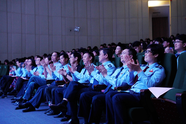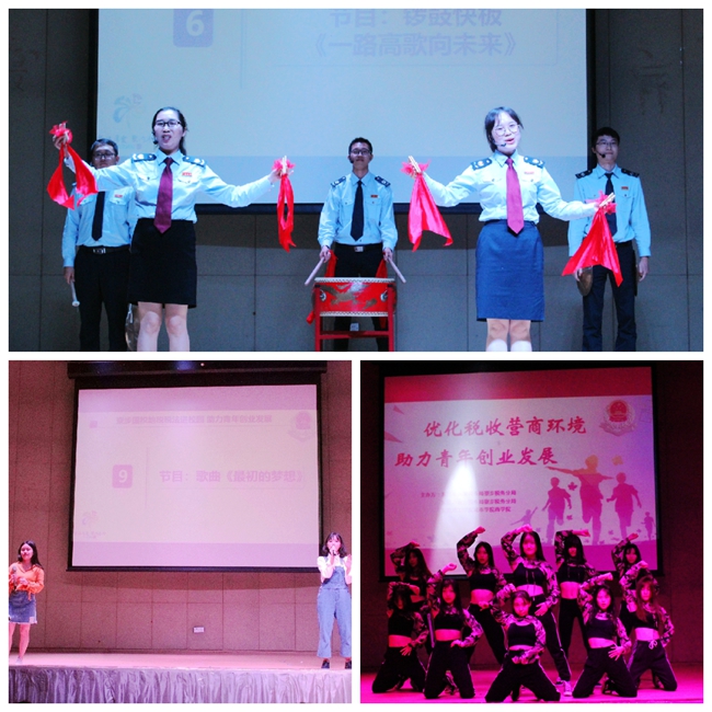 来自税务系统的工作人员还为师生们带来了锣鼓快板《一路高歌向未来》,六名寮步国税青年干部声情并茂地朗读了由我院学子创作的优秀作品税收“三行情书”,将现场气氛推向了高潮。