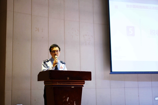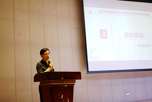 活动播放了税法宣传片,邀请陈锐金副局长作了税收政策宣讲,让同学们对企业初创、成长到成熟过程中的各项税收政策有了更深刻的了解。