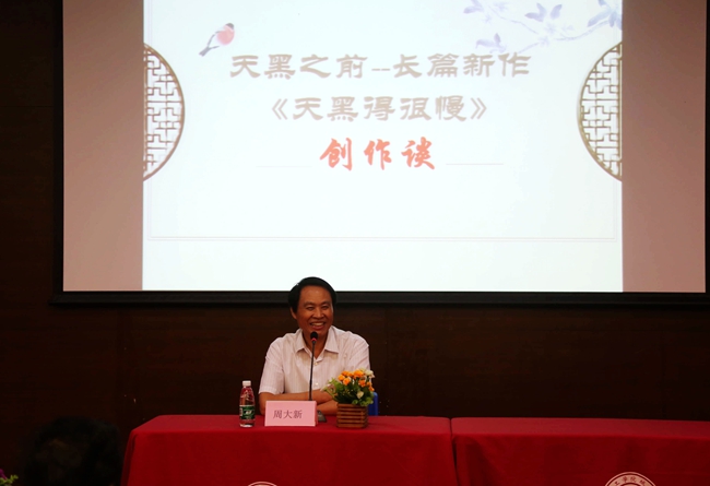 4月25日下午,著名作家周大新在我院举办“天黑之前——长篇新作《天黑得很慢》创作谈”讲座。讲座由教务处和文传系联合举办,文传系师生代表聆听了讲座。
