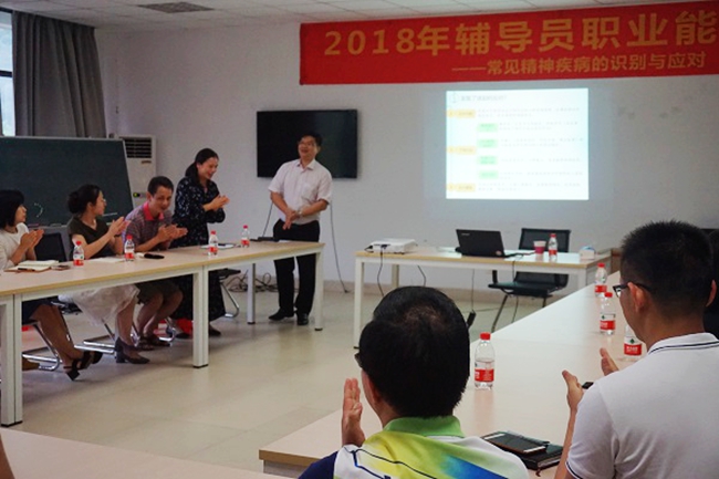 黎柱培副院长作了题为“大学生常见精神障碍的识别与应对”的培训报告,对“精神障碍的概述、精神障碍的识别、大学生常见的精神障碍类型及如何帮助精神障碍学生”等方面,从学校、医院及社会角度让大家更好地去理解精神疾病。他还结合实际案例,用通俗易懂的语言生动地为大家上了一堂精神卫生课。