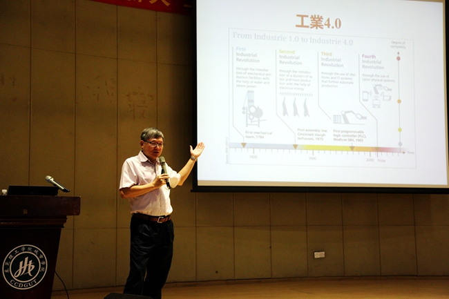 周至宏教授为师生们介绍了工业制造和工业4.0的目标与战略,通过各种实际案例阐述了智能制造、工业4.0等未来发展前景。他还分享了自己以及团队目前正在研究的问题,为师生们以后的科研工作提供了很好的研究思路与方法。