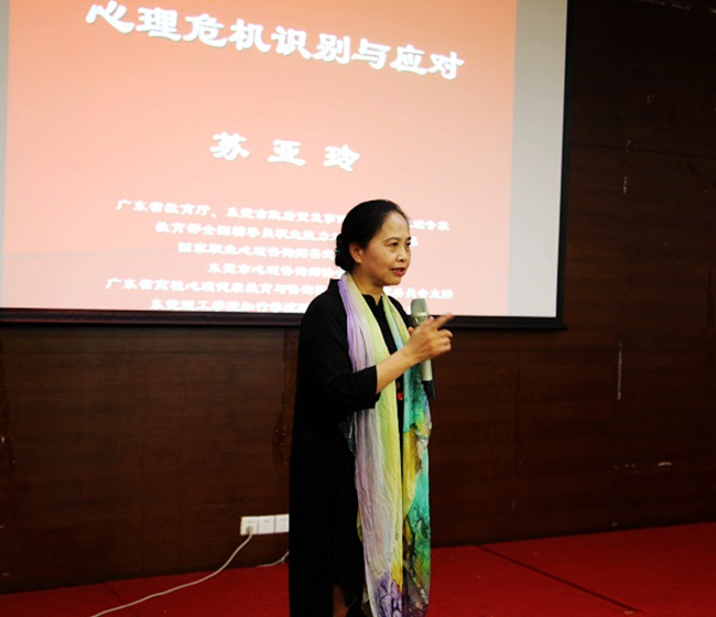 5月21日下午,学生处与人事处联合举办“大学生心理危机的识别与应对”讲座,邀请了广东省教育厅及东莞市政府突发事件应急管理心理专家、广东省高校心理健康教育与咨询区域中心专家委员会主任、广东省高校心理健康教育与咨询专业委员会副主任苏亚玲副教授担任主讲嘉宾。章德胜副书记出席了会议。