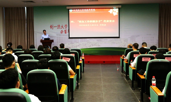 2005级软件工程专业邓锦溏校友代表分享了他的校友工作心得。他认为,作为一名校友联络员,要以校友会作为据点,以服务校友作为触点,多为校友工作谋划策、建桥梁、开通道。城院人以自身独有的归属感和团结精神,必定会在校友事业上节节高升。