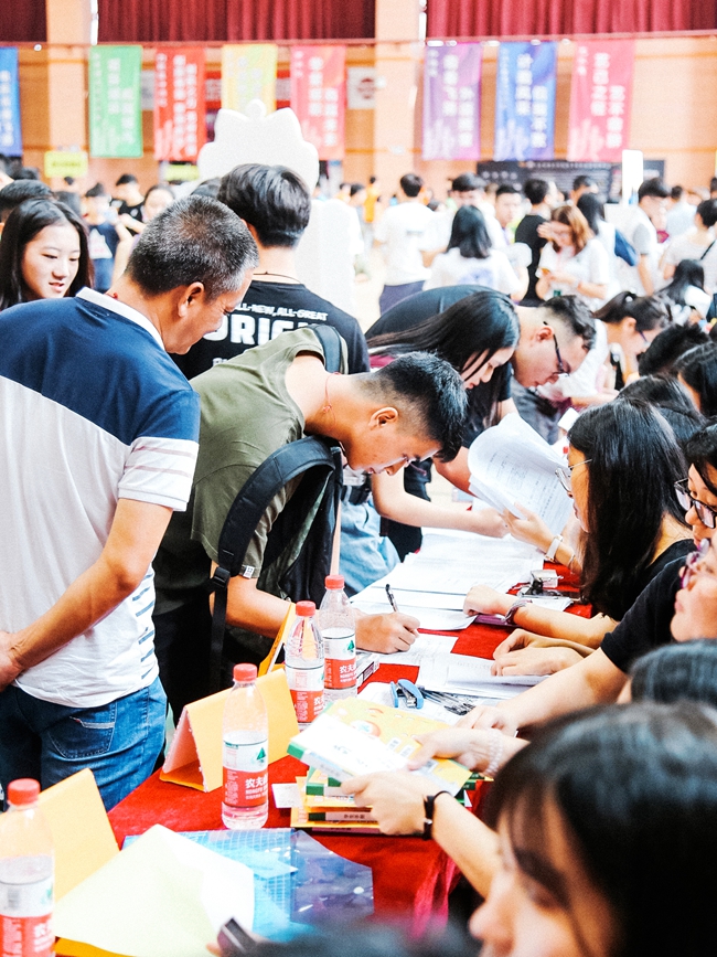 上午8点,迎新工作人员和志愿者早早迎候在综合馆。今年迎新工作仍采用“集中接待、集中办公”的方式,但是,在综合馆报到现场,没有像往年一样出现“排长龙”的场面。这得益于“智慧城院”APP的投入使用,有效地简化了报到流程。商学院院长罗卫国表示:“今年大部分新生都在‘智慧城院’APP上自行完成了报到相关流程,只需领取钥匙入住宿舍。迎新效率得到了极大提高,给师生和家长带来了便利。”