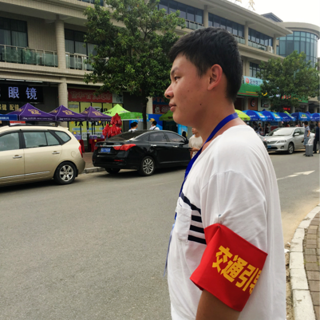 “我们从7点半就开始在这里指挥交通,到现在已经8个小时了。刚刚虽然发生了小事故,但是在协调之下也圆满解决了。这对我们来说很欣慰,看到新同学来报到也很开心。”一位交通指挥志愿者微笑着说道。