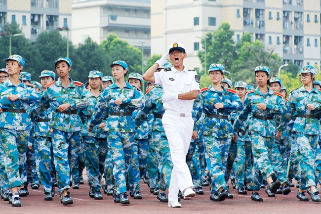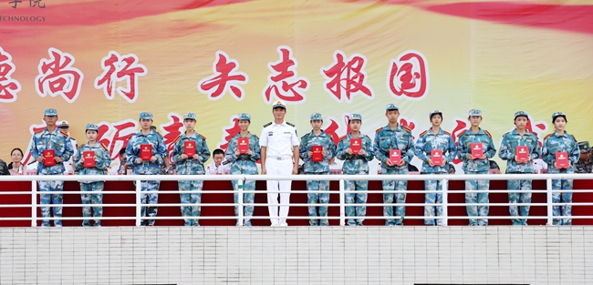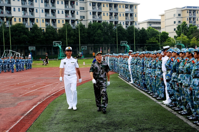 在激昂的军乐声中,王卫平院长在徐卓上校的陪同下检阅了受训新生队伍。