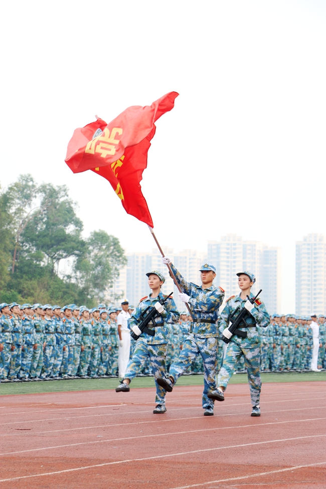 迎团旗后,分列式正式开始。国旗护卫方队、军训团团旗和由2018级新生组成的19个连队方阵,在教官带领下,依次走过主席台,接受领导检阅。他们迈着矫健的步伐,英姿飒爽、神采飞扬,展示了2018级新生意气风发的青春活力和奋发向上的精神风貌。