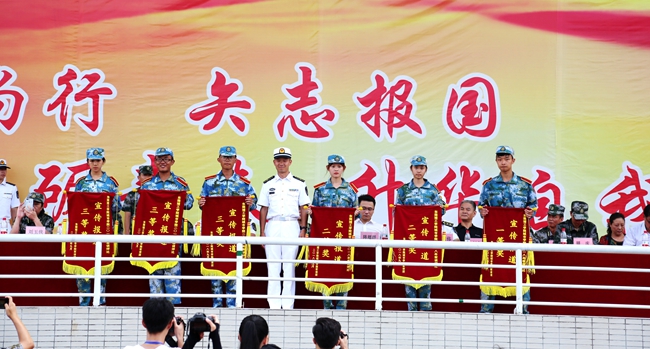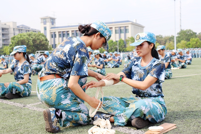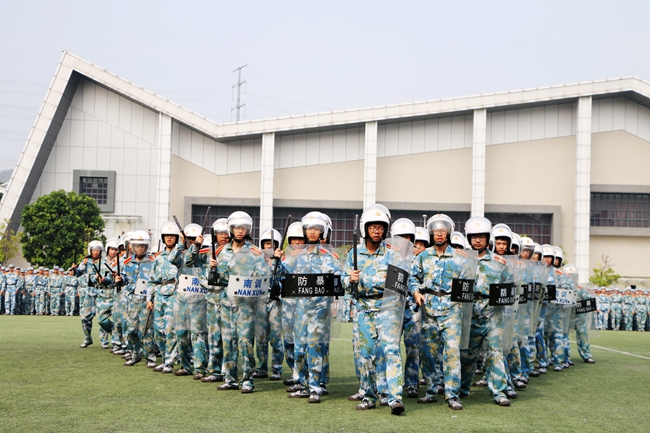 在汇报表演中,受训新生进行了格斗术、盾牌反恐防暴、军体拳、匕首操、战伤救护、海军旗语等表演,赢得了观众热烈的掌声。