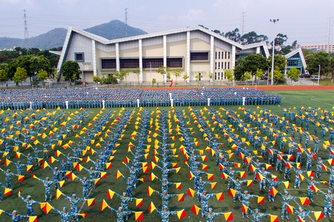 9月20日上午,2018级新生军训汇报表演在学院田径场举行。91676部队徐卓上校、田建伟中校,学院董事长代表陈超群,院领导王卫平、章德胜、高香林、黄兢、周庆、刘玉侠、林江龙和军训团全体教官、指导员,各单位负责人,以及2018级新生参加了军训汇报表演。