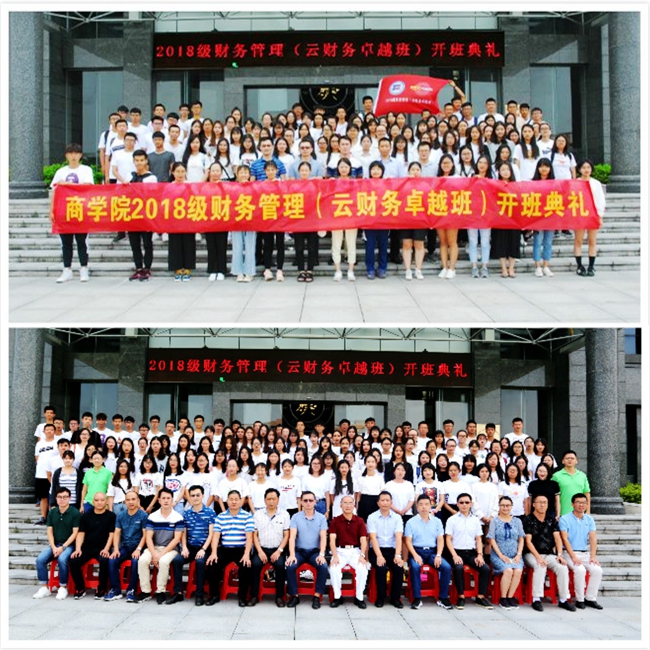 校企双方领导、嘉宾、老师和2018级云财务卓越班的全体同学在行政楼门前进行了合影留念。
