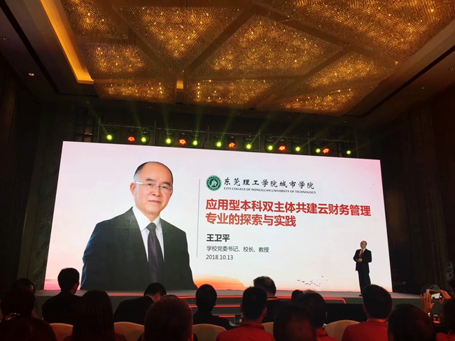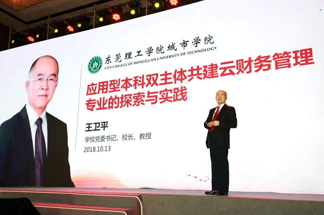 会上,我院党委书记、院长王卫平以“应用型本科双主体共建云财务管理专业的探索与实践”为主题,对学院云财务人才培养模式的创新和探索进行了分享。王卫平院长首先介绍我院概况,表示我院地处在粤港澳大湾区中心地带,抓住历史机遇,携手新道重构财务管理专业人才培养方案,共同培养适应地方经济社会发展需要的云财务管理会计人才。