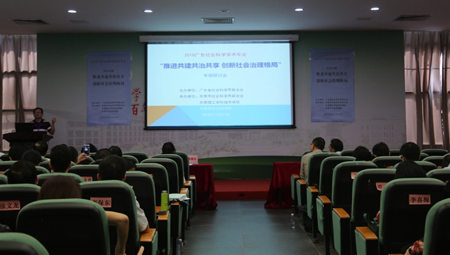 10月27日,由广东省社会科学界联合会主办,东莞市社会科学界联合会、东莞市社会科学院和我院承办的2018广东社会科学学术年会“推进共建共治共享,创新社会治理格局”专场研讨会,在我院举行。