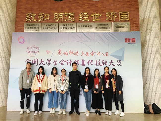 12月8日,第十二届“新道杯”全国大学生会计信息化技能大赛广东赛区总决赛在华南农业大学举行。我院商学院两支参赛队伍分别获得了本科组团队二等奖、三等奖,2016级CPA创新班庄漫仪同学获得个人赛一等奖。