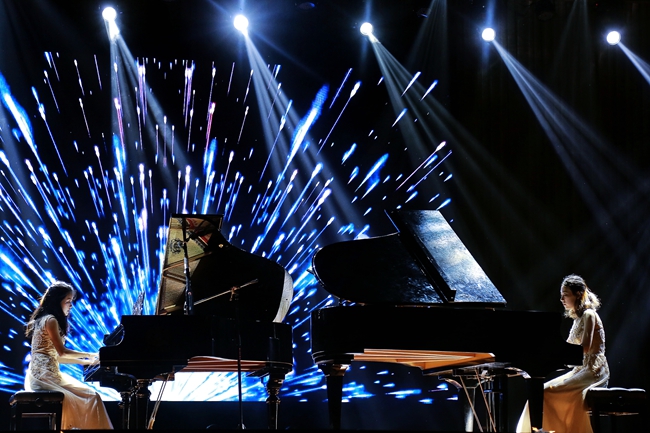 由王格、梁颖诗弹奏的双钢琴表演《自由探戈》,其优美的钢琴声碰撞融合,巧妙音乐布局给听众制造了巨大的遐想空间,发人深思。阿卡贝拉《爱要坦荡荡》,用人声代替乐器,在铺满多种和声的旋律游走,像交响乐一样交织于曲目中,让人流连忘返。歌伴舞《我的新衣》,说唱元素中与京剧相互碰撞融合,产生了不一样的火花,令人耳目一新,场下欢呼声不断。音乐情景剧《晴天》讲述大学生活酸甜苦辣,追忆往昔岁月,难忘当时情形。男女二重唱《告别时刻》,优美浑厚的声音,诉说着离别时刻,将气氛推向高潮。
