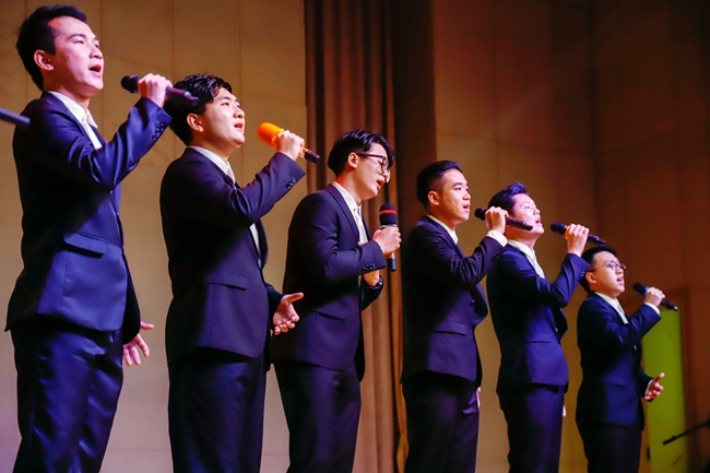晚会伊始,由《克卜勒》《知足》改编的器乐演唱串烧交相辉映得演绎出不同味道。陆雪平同学以独特的唱功演绎的《桃花红杏花白》,带来了山西民歌的风韵。《耶鲁摇滚》《冬风》让观众渐渐沉浸在美妙的钢琴乐之中。龚飞霞同学《我心永爱》赢得了阵阵掌声与喝彩。