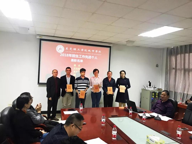 会议对荣获2018年招生工作先进个人进行了表彰。王卫平院长为机电系党总支书记唐洁、商学院党总支副书记李玉春、金贸系党总支副书记万文双、招生办公室主任何钊威、后勤保卫处凌继峰老师等荣获2018年招生工作先进个人进行了颁奖。