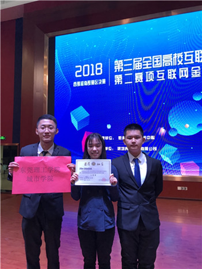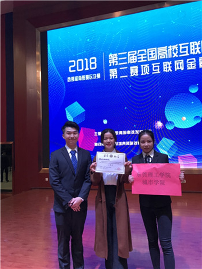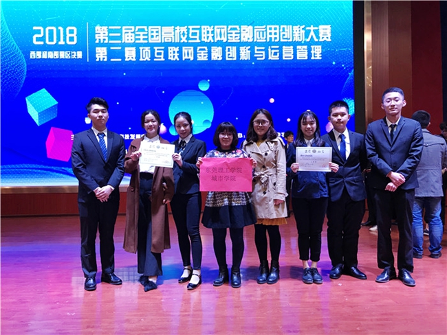 12月1日,第三届全国高校互联网金融应用创新大赛南部赛区决赛在贵阳市贵州城市职业学院举行。我院金贸系由梁悦、刘飞雨老师带领的两支队伍进入决赛,其中胡宗威、黄凯灵、郑海怡同学组成的“可乐队”获得二等奖,彭庆鸿、吴爵、林衍婷同学组成的“骤光队”获得三等奖。