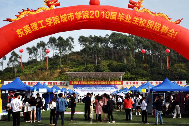 12月6日下午,我院2019届毕业生大型校园招聘会在田径场举行。根据我院学科专业的特色和毕业生的需求,通过精选出来的350家知名企业携带超过10000个专业对口岗位前来揽才,吸引了5000多名包括我院在内的东莞高校应届毕业生前来应聘。东莞市人才办主任吴德阳、东城区人力资源分局局长王毅、南城区人力资源分局就业办主任蔡月媚,兄弟院校就业部门负责人,我院院领导王卫平、章德胜、黄兢、周庆、林江龙等亲临现场指导工作。