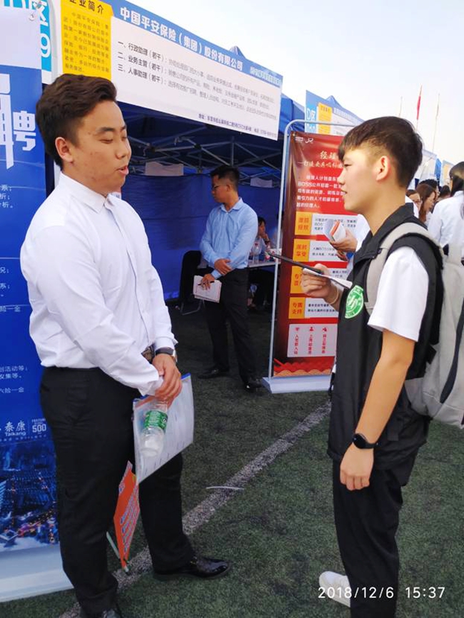 记者从15级机电工程系机械设计制造及其自动化2班的刘涛同学了解到,在面试过程中,他选择了与专业对口的企业面试。因为是自己所喜欢的和热爱的,而且不想浪费自己长时间去学习的知识。
