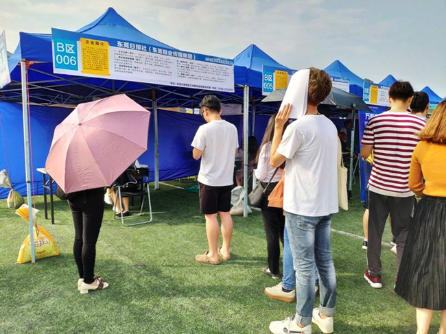 经过雨水冲刷后的操场,由于天公的放晴而变得更加的明亮。此次2019届毕业生校园招聘会邀请了东莞本土最大的报纸发行中心——东莞日报社的加盟。