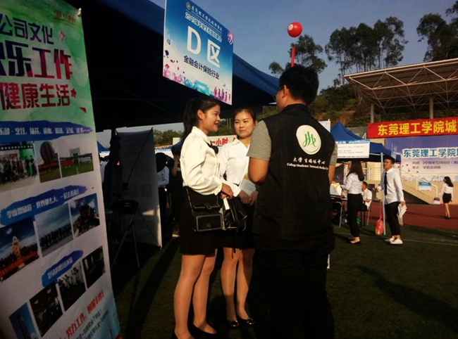 在众多招聘摊位中,广东光大企业集团的招聘摊位前,众多西装革履的应聘者排起了长长的队伍。2015级城环系土木工程专业的高志强同学告诉记者,该公司为实力雄厚的东莞本土企业,因此吸引了许多毕业生前来应聘。他表示对自己的职位有清楚的定位,如今应聘的职位是与专业对口的土建工程师。