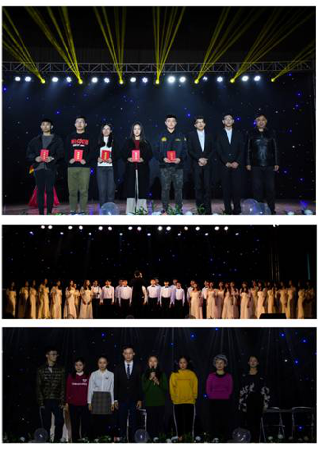 晚会还对先进班集体、优秀班主任、优秀毕业工作辅导员助理、金贸好青年、文体活动积极分子等进行了表彰。